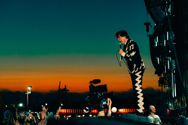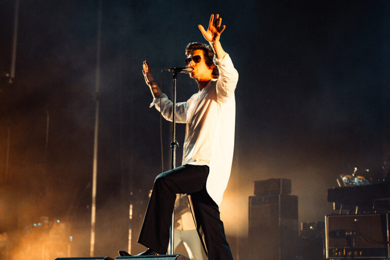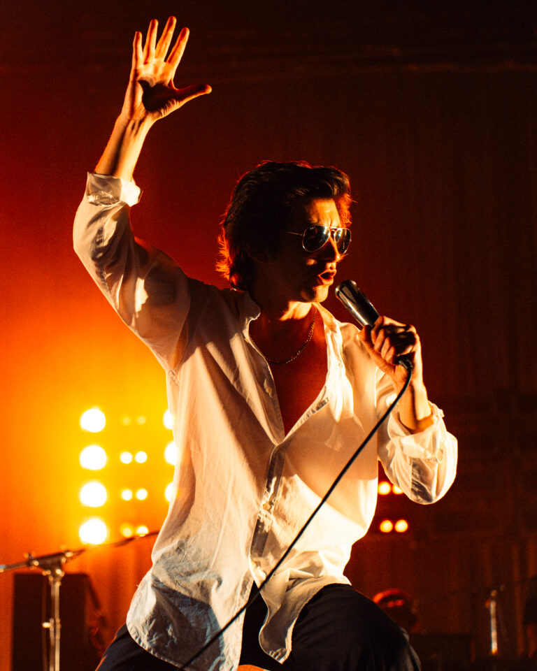 Κάπως έτσι τελείωσε το setlist των Arctic Monkeys και τις δύο βραδιές. Ορκίζομαι ότι είδα πολλά δάκρυα να κυλούν, άκουσα πολλούς αναστεναγμούς, το τέλος μας βρήκε σε μια κατάσταση γλυκιάς ευφορίας, σοκ, παραμιλητού. Πώς φτάσαμε όμως ως εκεί; Ε, δεν και θες πολύ, βγαίνει ο Turner στη σκηνή με πόζα α λα Έλβις, ανοιχτό πουκάμισο να φαίνεται το στέρνο (λευκό την πρώτη μέρα, γαλάζιο τη δεύτερη) και γυαλιά ηλίου Top Gun και ξεκινάει το γλέντι.