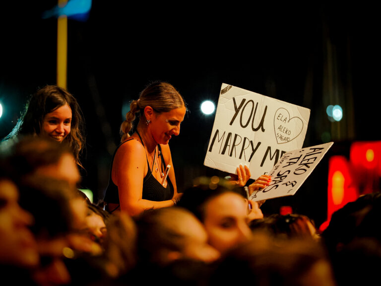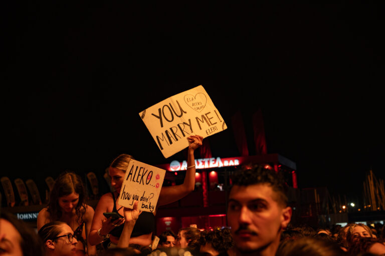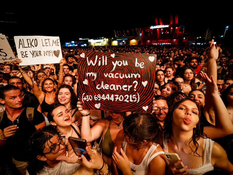Βρέθηκα λοιπόν από νωρίς κι εγώ, μαζί τα κοριτσάκια που κρατούσαν τα πλακάτ με τα συνθήματά τους στην Πλατεία Νερού, όχι για να πιάσω κάγκελο αυτή τη φορά (τόπο στα νιάτα, όταν κλείνεις τα 50 αφήνεις τους πιο διψασμένους να το ζήσουν ή τέλος πάντων ας μη γελιόμαστε, δεν υπάρχει η ίδια αντοχή) αλλά ένα καλό σημείο σχετικά κοντά στη σκηνή. Δύσκολο task, κυρίως τη δεύτερη μέρα, αφού το πλήθος ήταν ήδη μεγάλο και έφτανε μέχρι τις οθόνες στο πλάι. Άλλωστε η δεύτερη μέρα (η οποία είχε ανακοινωθεί πρώτη) είχε γίνει sold out μέσα σε λίγες ώρες και η πρώτη είχε πουλήσει λίγα μόνο εισιτήρια λιγότερα.