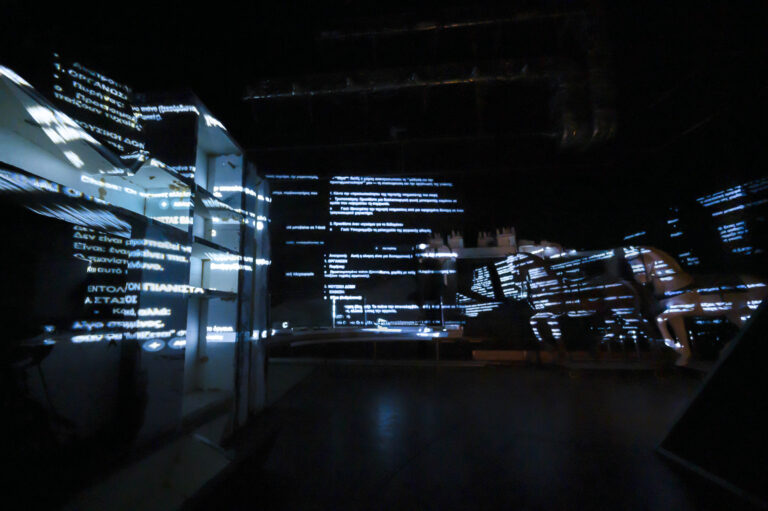 Από πρακτικής απόψεως ήταν το γεγονός ότι έστηνα το έργο σε επτά διαφορετικούς χώρους του Μεγάρου, όχι απαραίτητα κοντά ο ένας με τον άλλο και με αρκετά δαιδαλώδεις συνδέσεις όπως λες, στις οποίες πολλές φορές, στην αρχή της παραγωγής, χανόμουν κι εγώ. Από αισθητικής απόψεως η πρόκληση ήταν να δημιουργήσω μια ενιαία ατμόσφαιρα και αφήγηση που να μην χάνεται καθώς το κοινό περπατά από τον ένα χώρο στον άλλο. Δεν πρόκειται για πολλά διαφορετικά έργα αλλά για ένα έργο μοιρασμένο σε πολλά μέρη.