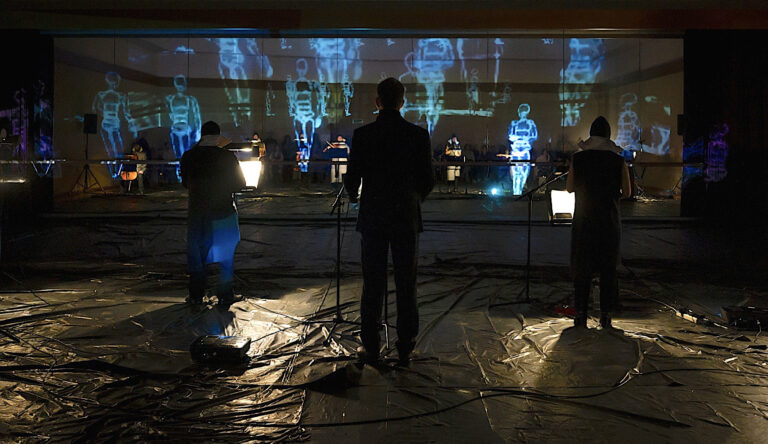 Κομμάτι κομμάτι το παζλ –η συμφωνία– συμπληρώνεται και καταλήγει στην αίθουσα δοκιμών μπαλέτου, όπου απογειώνεται από μία σύμπραξη οχτώ οργάνων –πιάνο, βιoλιά, βιολοντσέλο, βιόλα, κιθάρα, σαξόφωνο, κοντραμπάσο-, που προ(σ)καλούν τα συναισθήματα. Μέχρι να φθάσει εκεί, ο θεατής περπατώντας ή στεκούμενος αφουγκράζεται τη συνομιλία του καλλιτέχνη με την ΤΝ για τη δημιουργία της σύνθεσης, ακούει τα μουσικά κομμάτια που σιγά σιγά ξετυλίγονται, διαβάζει την ηλεκτρονική “αλληλογραφία” του Γιώργου Δρίβα με την ΤΝ, ανεβαίνει ορόφους, ακολουθεί μουσικούς –πάντα η πλάτη τους στο βλέμμα μας-, ανακαλύπτει τα σπλάχνα ενός κτιρίου με πρωτόγνωρο τρόπο, έτσι όπως δεν θα το φανταζόταν ποτέ. Και σκέπτεται, βεβαίως, πού οδηγεί όλο αυτό, τι νόημα μπορεί να έχει, πώς μπορεί να καταλήξει. Το αποτέλεσμα, ολόκληρη πλέον η ιδιότυπη μουσική αυτή συμφωνία, παρουσιάζεται ως “γενική πρόβα”, δηλαδή μια περίπου κανονική κατάσταση θέασης και ακρόασης -ένα βήμα πριν την «πρεμιέρα»-, σε έναν χώρο ζεστό, γεμάτο από το ανθρώπινο στοιχείο, μια αίθουσα δοκιμών χορού. Απολαυστικό και συγκινητικό. Από τη μια σε κάνει “συνένοχο”, καθώς έχεις παρακολουθήσει όλα τα στάδια εξέλιξης. Από την άλλη διατηρεί το μυστήριο, καθώς οι μουσικοί με τα εκκεντρικά κοστούμια παραμένουν με την πλάτη στο κοινό, και μόνο ο καθρέφτης της αίθουσας μπορεί ίσως να τους αποκαλύψει.