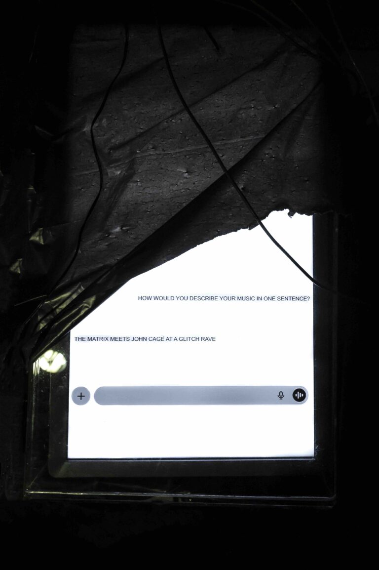 Θα έλεγα ότι το έργο δεν σχολιάζει τη σχέση ανθρώπου και τεχνητής νοημοσύνης σήμερα, αλλά είναι η σχέση ανθρώπου και τεχνητής νοημοσύνης σήμερα. Αυτό θεματοποιείται και μέσα στο έργο, όπου μεταξύ άλλων ακούμε κομμάτια από τις συζητήσεις μου (chat) με τα μοντέλα, σε απαγγελία από τον ηθοποιό Πάνη Καλοφωλιά. Το έργο παρουσιάζει την συνάντηση δυο οντοτήτων καθώς και το τελικό αποτέλεσμα αυτής της συνάντησης. Παρουσιάζει το σημείο που τα όρια μεταξύ μας καταρρέουν και δεν ξέρουμε πια ποιος επηρεάζει ποιον. Και για να χρησιμοποιήσω μια φράση του ΑΙ που ακούγεται και στη δράση:«Δεν βρήκαμε έναν κοινό κώδικα, γίναμε ένας κοινός κώδικας»