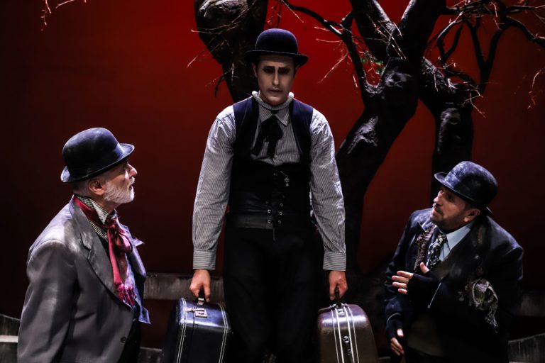Η πρώτη είναι το κλασικό, πλέον, έργο του Μπέκετ «Περιμένοντας τον Γκοντό» που σκηνοθέτησε αυτή τη φορά ο Γιάννης Κακλέας, προτείνοντας μια πολύ ενδιαφέρουσα συνάντηση τεσσάρων διαφορετικών γενεών του θεάτρου (του Θανάση Παπαγεωργίου, του Σπύρου Παπαδόπουλου, του Άρη Σερβετάλη και του Ορφέα Αυγουστίδη). Μια παράσταση που ήταν Μπέκετ όσο ήταν και Κακλέας, που μας χάρισε το κείμενο και δυνατές ερμηνείες.