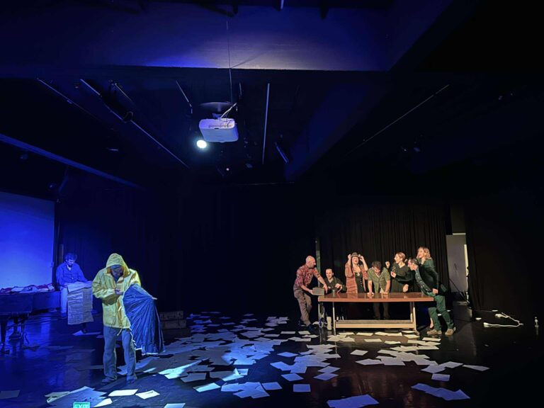 Βλέποντας τους έτσι όλους μαζί, τους ζήτησα, αντί να κάνω ερωτήσεις που θα έσπαγαν την “αλυσίδα” και αυτήν την βαθιά τρυφερή και ευαίσθητη ατμόσφαιρα, να μου γράψουν ως ένας, τα συναισθήματά τους, τις σκέψεις τους για αυτό που κάνουν δέκα χρόνια μετά ως φόρο τιμής στον δάσκαλό τους, όχι ως άπειροι φοιτητές πια, αλλά ως ενήλικες επαγγελματίες με πείρα τόσο στη ζωή όσο και στην Τέχνη. Μου έδωσαν το παρακάτω σημείωμα και, ειλικρινά, μαζί με ένα δάκρυ που κύλησε, ευχήθηκα να μην κάνουν ποτέ «βήματα πίσω -ούτε στη σκηνή ούτε στη ζωή»: