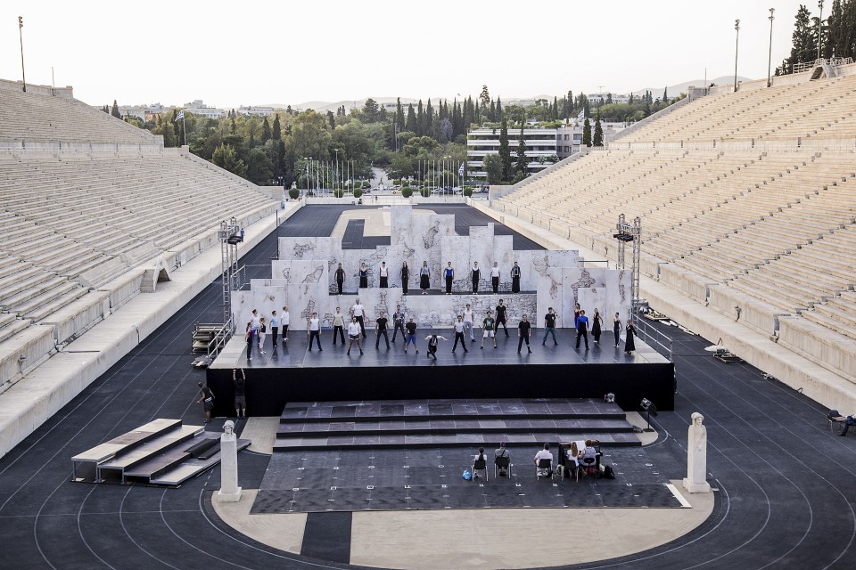 Παναθηναϊκό Στάδιο, την ώρα που ο τελευταίος ήλιος πέφτει πάνω στο λευκό μάρμαρο. Το μπαλέτο δίνει τον καλύτερό του εαυτό και ναι, κάπου εκεί ξεχνιέσαι, όσο κυνικός κι αν είσαι.