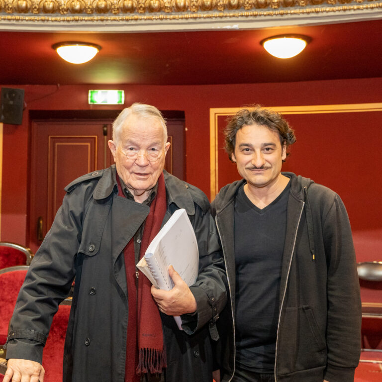 Ο ένας είναι 85 ετών κι ο άλλος 81. Έχουν και οι δύο γεννηθεί -συμπτωματικώς- αρχές Οκτωβρίου. Είναι και οι δύο -καθόλου συμπτωματικώς- από τους μεγαλύτερους μύθους της διεθνούς θεατρικής σκηνής. Και χτες, προσγειώθηκαν αμφότεροι, αναπάντεχα, ανάμεσά μας, στον βροχερό Πειραιά, με την εξέδρα έτοιμη για την παρέλασης της 25ης Μαρτίου. Τα δυο κάτασπρα πλέον κεφάλια πέρασαν το κατώφλι του Δημοτικού Θεάτρου Πειραιά. Και μας επεφύλασσαν εκπλήξεις. Ο πρώτος είναι ο Γερμανός μέγιστος θεατράνθρωπος Πέτερ Στάιν, που έχουν λατρέψει οι Έλληνες θεατρόφιλοι, από την εμβληματική του «Ορέστεια» και την καταιγιστική «Πενθεσίλεια» μέχρι τις αλησμόνητες επιδαυρικές «Μήδεια» και «Ηλέκτρα». Έχει ήδη ξεκινήσει εδώ και δύο εβδομάδες, πρόβες για τον «Μισάνθρωπο» του Μόλιερου με τον Βασίλη Χαραλαμπόπουλο ως Μισάνθρωπο-Αλσέστ (η πρεμιέρα στις 19 Απριλίου) και, όπως μας εξομολογήθηκε με αυτή την μεταλλική, γερμανική ειλικρίνειά του, ανησυχεί. Ανησυχεί, καθώς, μη γνωρίζοντας Νέα Ελληνικά (στα αρχαία είναι expert), βασανίζει τους Έλληνες ηθοποιούς του!(«Μας σταματάει σε κάθε ατάκα για να την ελέγξει μέσα από το γαλλικό πρωτότυπο», μας επιβεβαίωνε λίγα λεπτά αργότερα ο Έλληνας πρωταγωνιστής, πανευτυχής, αλλά εμφανώς ολίγον αγχωμένος).
