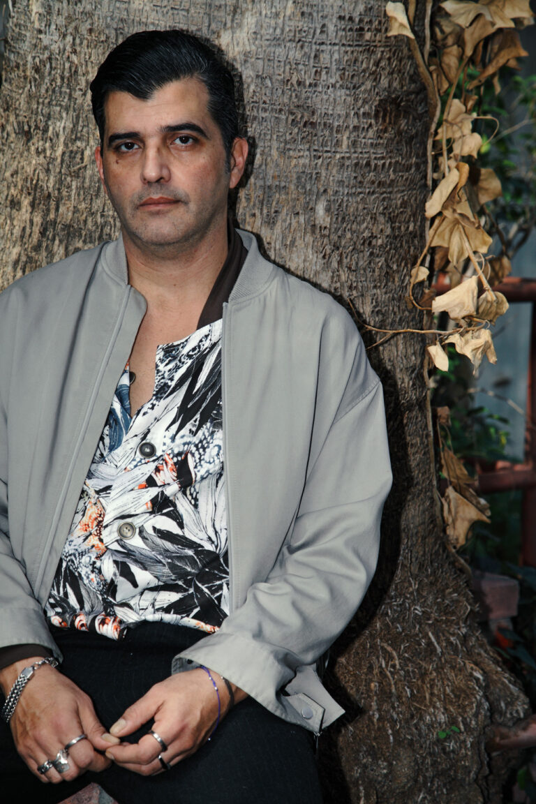 Τα δαχτυλίδια του τραβούν το βλέμμα μου - μέρος μιας εικόνας που δείχνει συνειδητή. Τον ρωτάω αν τα αγαπά από παλιά. «Όχι, δεν τα είχα πάντα», λέει γελώντας. «Μου βγήκε τα τελευταία πέντε χρόνια. Ξαφνικά με έπιασε». Δεν υπάρχει κάποια παράξενη θεωρία πίσω από την επιλογή τους. Απλώς του αρέσουν. Και όταν το σκέφτεται λίγο περισσότερο, παραδέχεται ότι ίσως έχει να κάνει με την πόλη που μεγάλωσε. «Σαν να κρύβεται ένα καλοκαίρι σε αυτά, ένα άρωμα εφηβείας. Η Θεσσαλονίκη το έχει αυτό».