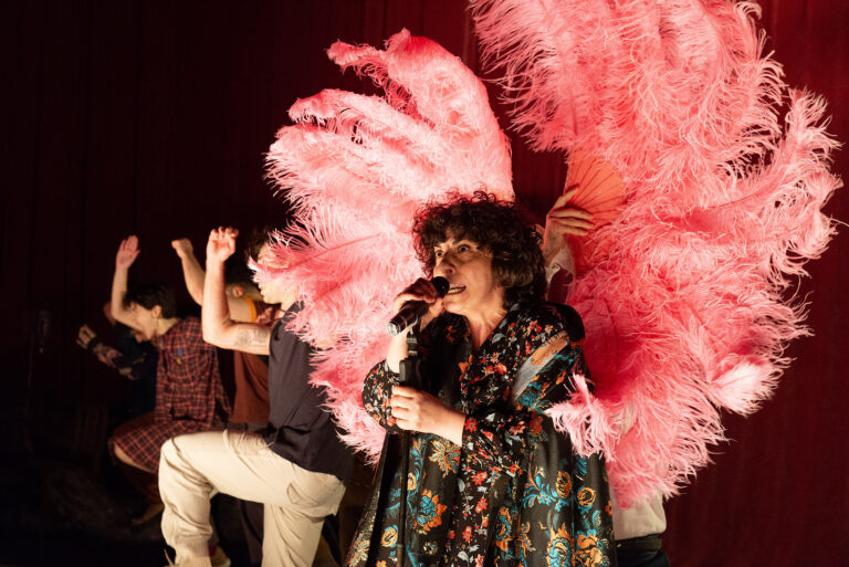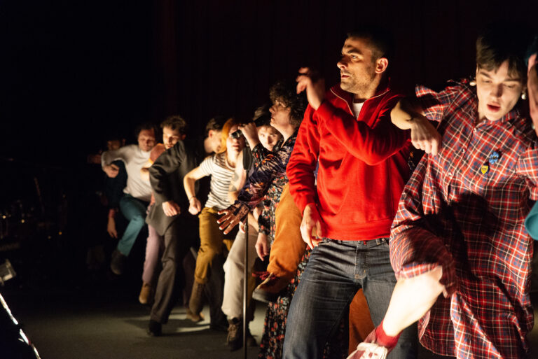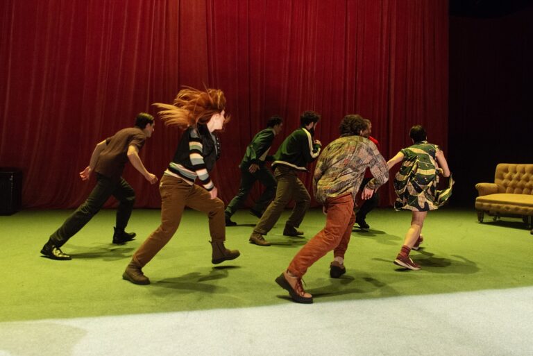 Του επισημαίνω πως βρήκα τη χορογραφία της Ξένιας Θεμελή συναρπαστική. «Η κίνηση εδώ μπήκε πιο μετά» λέει, «όταν άρχισε το άνοιγμα προς το κοινωνικό σύνολο. Όταν οι μονάδες γίνονται κοινότητα. Ξεκινάω πάντα από την αρχή. Προχωράω το έργο και βλέπω πού με οδηγεί συναισθηματικά και νοητικά. Και χρησιμοποιώ τον χορό και τη μουσική ως συμπλήρωμα του λόγου. Τα χρησιμοποιώ για να γεμίσουν κενά. Να ανοίξουν λίγο το νόημα σε σκέψεις και συναισθήματα του θεατή. Να μπει ένα έξτρα στοιχείο που να ανθίζει».