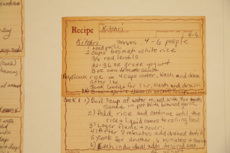 Η μητέρα του, μέσα από τις παλιές παραδοσιακές συνταγές της δικής της μητέρας, χρησιμοποιεί το μπαχάρι [allspice], όχι μόνο ως ένα συστατικό που θα δώσει νοστιμιά στο φαγητό, αλλά ως ένα υπέροχο υποκατάστατο όλων των μπαχαρικών και των γεύσεων της πατρίδας της, που δεν μπορούσε να έχει μαζί της. Ο Rakowitz δημιουργεί στην Αθήνα ένα νέο έργο: κολλώντας σε κολώνες, διάσπαρτες στην αίθουσα, τις εκατοντάδες παραδοσιακές συνταγές της μητέρας του, γραμμένες από την ίδια, χρησιμοποιεί νοερά τη γεύση, το άρωμα, την ίδια την πράξη του μαγειρέματος στην οικογενειακή εστία, ως εντυπωμένα σύμβολα επανάκλησης της μνήμης ενός τόπου, στον οποίο αυτή η γυναίκα δεν πρόκειται να επιστρέψει ξανά.
