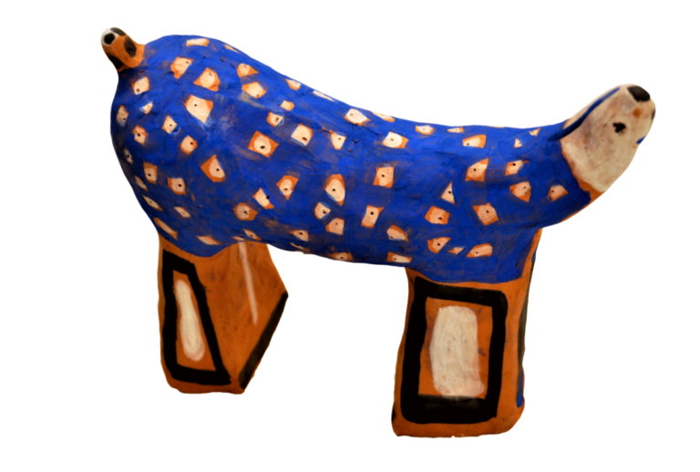 «Τη δουλειά μου τη χωρίζω σε κάποιες θεματικές. Έχω τα κεραμικά μου, τα ξύλινα γλυπτά μου, τους καμβάδες μου στους οποίους αποτυπώνονται τα landscapes και οι εικόνες από την «εξωπραγματική χώρα». Έχω επίσης τα cut-off creatures που είναι όντα φτιαγμένα από ξύλινους κορμούς. Παρ’ όλο που τα όντα αυτά είναι κομμένα στη μέσα, είναι ακόμη ζωντανά και αλλάζουν μέλη του σώματος. Για παράδειγμα, το κεφάλι ή η ουρά τους, μπορούν να ταιριάξουν σε κάποιο άλλο πλάσμα. Κατ’ αυτόν τον τρόπο, καλλιεργώ ένα αίσθημα ισότητας, διαδίδω το μήνυμα πως όλοι είμαστε ένα, είμαστε αλληλένδετοι. Είμαστε διαφορετικοί, αλλά ίσοι. Έχω και τα totem creatures που είναι πλάσματα τοτεμικά, έχουν κάτι μαγικό και ήρεμο για μένα. Χωρίζω τα έργα μου σε οικογένειες, αλλά όλα ζουν στο “Fantasy World”, στον φανταστικό, εμπνευσμένο από τις παιδικές μου αναμνήσεις κόσμο».