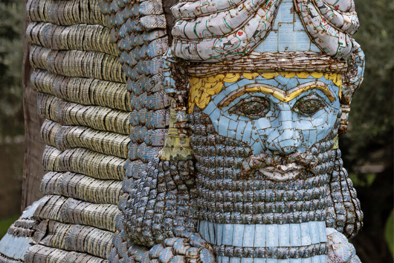 Η εγκατάσταση παρουσιάζεται στον εξωτερικό χώρο του Μουσείου, στη δυτική πλευρά προς την οδό Μητσαίων. Το έργο ανήκει στη μακροχρόνια σειρά The Invisible Enemy Should not Exist (2006–σήμερα), του διεθνώς αναγνωρισμένου Αμερικανοϊρακινού καλλιτέχνη, με την οποία ο Rakowitz «επανεμφανίζει» αντικείμενα που λεηλατήθηκαν από το Εθνικό Μουσείο του Ιράκ μετά την εισβολή του 2003 ή καταστράφηκαν από το ISIS, όπως τα γλυπτά του Μουσείου της Μοσούλης το 2015.