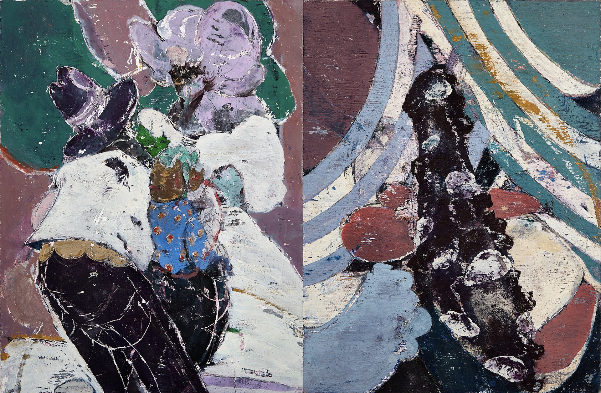 Σε αυτά τα έργα επιλέγεις την αφαίρεση και όχι την αναπαράσταση. Οι μορφές αυτές φέρνουν στο νου τα σώματα του Φράνσις Μπέικον. Επιλέγω την αναπαράσταση μέσω της αφαίρεσης. Όσο αφαιρετικά κι αν φαίνονται κάποια έργα της έκθεσης, η βάση τους είναι παραστατική. Αυτό που μ’ ενδιαφέρει είναι o συνδυασμός της παραστατικότητας με το abstract.
