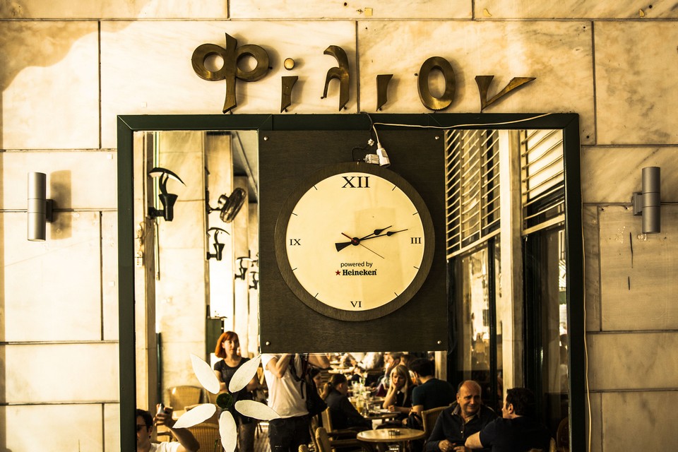 Πίνω το κρασί μου, το αυτί μου πιάνει σπαράγματα από διάφορες φράσεις («αν του παραιτηθεί ο Τσακαλώτος», «πάλι απεργία οι δημοσιογράφοι;», «διάβασες το τελευταίο μυθιστόρημα του;») που διασταυρώνονται στον αέρα, παρατηρώ τη νεκροκεφαλή στο α λα Keith Richards δαχτυλίδι του Παναγιωτίδη, τα λευκά κοκάλινα γυαλιά του Τζούμα, το «ΦΩΣ» που με τυφλώνει, μυρίζω την ωραιότερη σπανακόπιτα της Αθήνας. Νιώθω σχεδόν να ζαλίζομαι από την άναρχη βαβούρα που προκύπτει από λέξεις, γεύσεις, καρέκλες που αγγίζουν η μία την άλλη κι από συζητήσεις που γλιστρούν με ευκολία από τη χαοτική πολιτική κατάσταση της χώρας στο πόσο όμορφα κοκκινίζουν τα μάγουλα μιας γυναίκας. Αν είσαι πρωτάρης στο Φίλιον θα νιώσεις σαν να βρίσκεσαι στη μέση μιας πλούσιας ζούγκλας γεμάτης ενδιαφέρουσα μονοπάτια με απότομες στροφές. Αν το Φίλιον αποφασίσει ότι του ταιριάζεις, οι θαμώνες του θα μοιραστούν μαζί σου τον χάρτη που διαμορφώνουν συνεχώς τα τελευταία σαράντα χρόνια. Απόλαυσέ το. Αλλά μη βιαστείς. Άλλωστε σε καφενείο βρίσκεσαι. Έχεις όλο τον χρόνο του κόσμου με το μέρος σου.