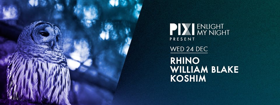 Την Τετάρτη παραμονή Χριστουγέννων 24 Δεκεμβρίου το PIXI παρουσιάζει μαζί με την ομάδα Enlight my night , The White Owl XMAS party Vol.2 σε μια βραδιά γεμάτη εορταστική διάθεση μαζί με τους Djs Rhino ,William Blake και Koshim.