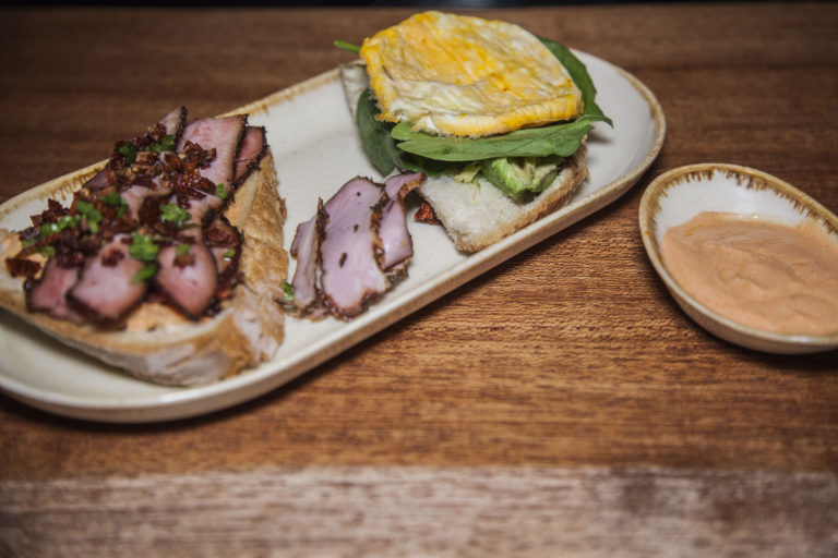 Το μενού συμπληρώνει η εξαιρετική χαλκιδαία μπύρα Marea, καφές της TAF, μια πολύ (πολύ όμως) μικρή αλλά εκλεκτική λίστα κρασιών σε ποτήρι και έξι επιλογές σε σάντουιτς που έχει δημιουργήσει ο Αλέξανδρος Πιτροπάκης και με εντυπωσίασαν για την πρωτοτυπία τους (δεν έχουν πολύ σχέση με την κλασικά σάντουιτς που συναντάς τόσο στα μπαρ όσο και στα street food spots) και κυρίως για το εκπληκτικό «σπιτικό» γευστικό τους χαρακτήρα (ο Πιτροπάκης είναι αυτοδίδακτος μάγειρας που ασχολήθηκε με τη μαγειρική ύστερα από μια στροφή καριέρας - και αυτό την προκειμένη περίπτωση είναι καλό). Δοκίμασα το «Veggie» με κρεμμύδι, καπνιστό τυρί Βέροιας, φρέσκο σπανάκι, κόκκινη πιπεριά και μια φανταστική χειροποίητη σος με ταχίνι (που δεν μου αποκάλυψε το μυστικό της) - ένα σάντουιτς που περνάει εντελώς απαρατήρητος ο χορτοφαγικός του χαρακτήρας και το εκπληκτικό (τύπου) «BLT» με μια μικρή ομελέτα με κρόκο Κοζάνης, φρέσκο σπανάκι, καπνιστή πανσέτα, αβοκάντο και λιαστή ντομάτα. Στα γλυκά συναντάμε μια κλασική γαλλική «τάρτα» clafoutis.