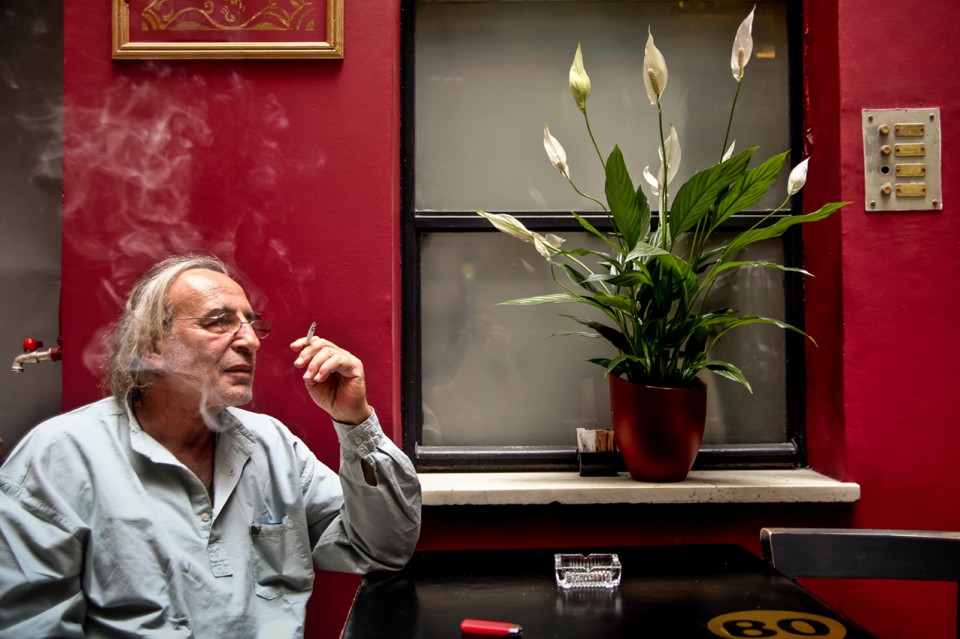 Παίζει μια παρτίδα σκάκι. Στο μεγάλο τραπέζι, μαζί με έναν φίλο του απ’ τα παλιά. Καπνίζει (ως συνήθως) και κρατάει ένα ποτήρι με πάγο που μάλλον είναι βότκα. Δίπλα στον αξιωματικό έχει πέσει ένα μεγάλο κομμάτι στάχτης. Λίγο αμήχανος, λίγο βαριεστημένος, αλλά αρκετά φιλικός ο Νίκος Λούβρος, το «φάντασμα της Κολοκοτρώνη» ξεκινάει να μου μιλάει για το Booze, το σπίτι του των τελευταίων 27 χρόνων. Η κουβέντα άνοιξε, η παρέα μεγάλωσε και τα 27 χρόνια Booze μπορεί και να είναι η αρχή. Σίγουρα δεν είναι το τέλος.