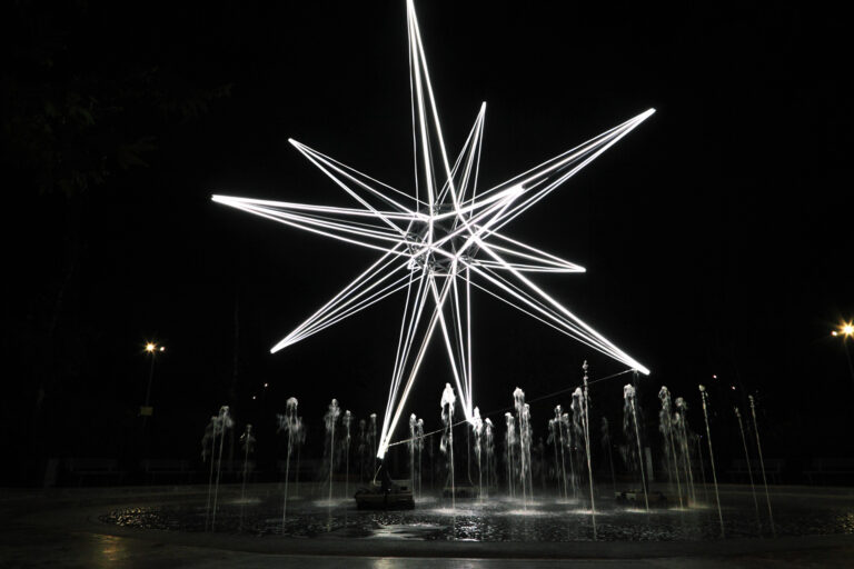Το Polaris, γνωστό και ως Αστέρι του Βορρά, υπήρξε επί αιώνες πολύτιμο σημείο προσανατολισμού για τους ταξιδιώτες. Λειτουργούσε πάντα σαν ημερολόγιο, προπομπός γεγονότων, μοιραίος παράγοντας του ουρανού προς τη γη. Σε αυτή την εγκατάσταση, το αστέρι στέκεται δίπλα μας, λάμποντας ως φάρος μέσα στον αστικό χώρο.