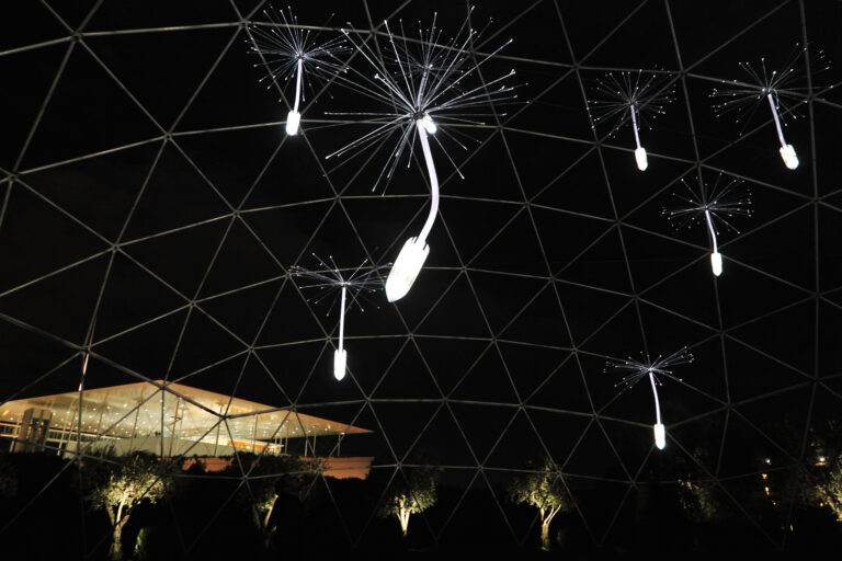Στο έργο Light a Wish του OGE Group, δέκα φωτεινές πικραλίδες, ή "κλέφτες" όπως τους γνωρίζουμε οι περισσότεροι, ύψους δύο μέτρων η κάθε μία, αιωρούνται από πάνω μας, στη κορυφή του Θόλου, και μοιράζονται μαζί μας αυτή τη μαγική στιγμή όπου οι σπόροι διασκορπίζονται, μεταφέροντας τις ευχές μας στον κόσμο. Το κάθε τεχνητό φυτό μοιάζει αδιόρατα να επικοινωνεί με τα υπόλοιπα και όλα μαζί λάμπουν με έναν τρόπο που δίνει την εντύπωση πως αναπνέουν.