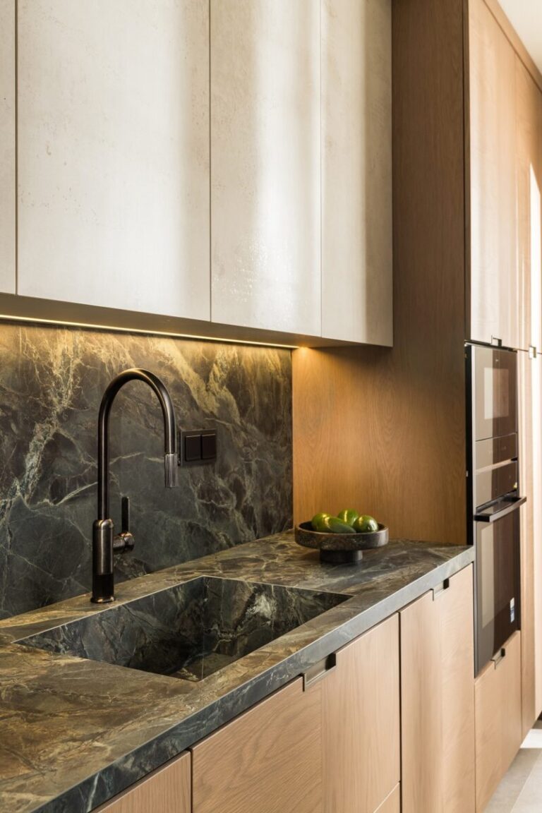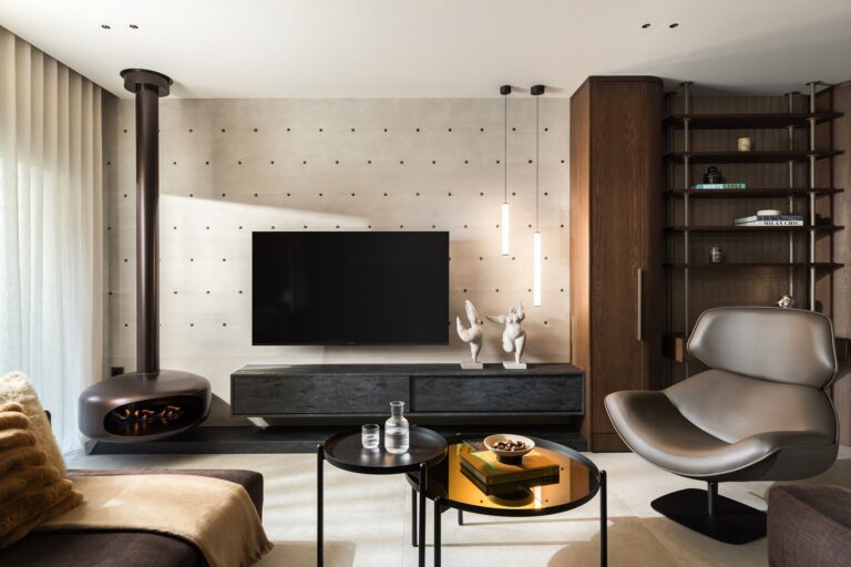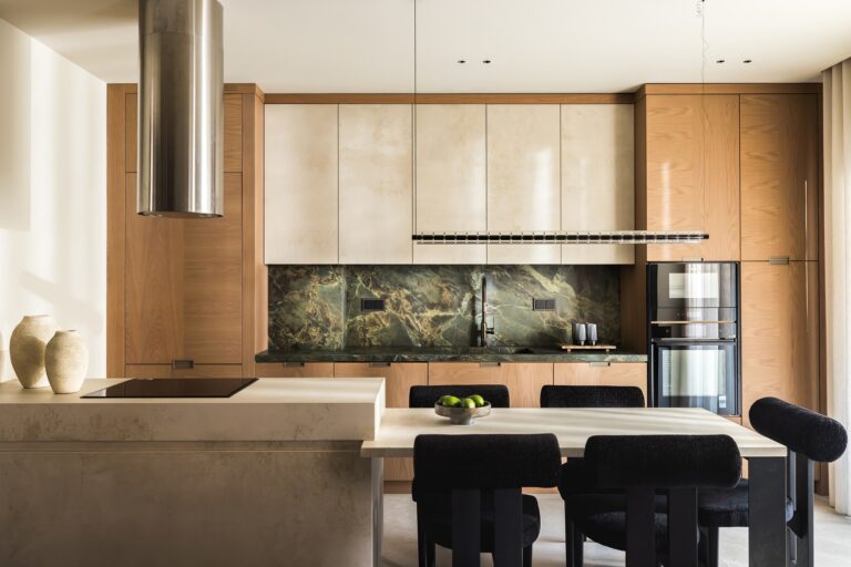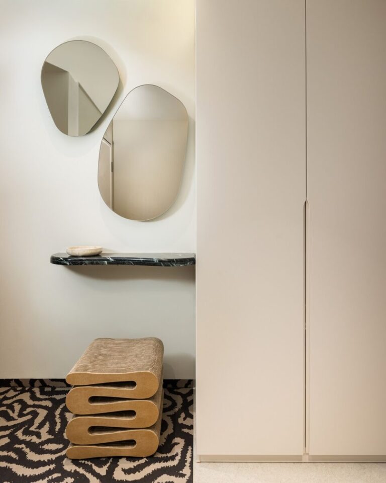 Η έμφαση στον συνδυασμό ιδιαίτερων και ποικίλων υλικών αποτέλεσε το κεντρικό στοιχείο του σχεδιασμού, δίνοντας χαρακτήρα σε κάθε σημείο του διαμερίσματος, και διατηρώντας ένα αρμονικό αποτέλεσμα.