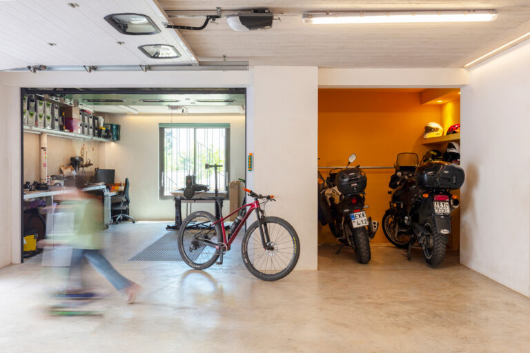 Αντίστοιχα, το ημιυπόγειο λειτουργεί ως ευέλικτος πολυχώρος, συνδυάζοντας τη στάθμευση με εργαστήριο 3D εκτύπωσης και υποστηρίζοντας ένα ευρύ φάσμα δραστηριοτήτων – από παιχνίδι και άθληση έως κοινωνικές συναθροίσεις.
