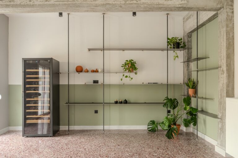 Η υλικότητα του έργου βασίζεται σε μια ισορροπία μεταξύ παλιού και νέου, τα αυθεντικά δάπεδα, οι απλές γεωμετρίες και οι χρωματικές επιλογές συνδυάζονται με σύγχρονες λεπτομέρειες, φωτισμό και ειδικές κατασκευές. Το τελικό αποτέλεσμα είναι ένας χώρος που διατηρεί τη μνήμη της αθηναϊκής πολυκατοικίας, ενώ ταυτόχρονα ανταποκρίνεται στις σύγχρονες ανάγκες κατοίκησης, προσφέροντας μια λιτή, λειτουργική και διαχρονική κατοικία.