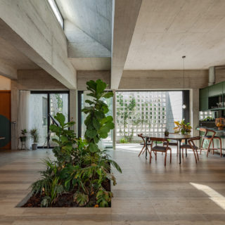 Η κάτοψη είναι απλή και λειτουργική, η κίνηση στους χώρους είναι περιμετρική. Το διαμέρισμα αποτελείται από χωλ, κουζίνα, λουτρό, υπνοδωμάτιο, τραπεζαρία/καθιστικό και στεγασμένη βεράντα που λειτουργεί σαν προέκταση του εσωτερικού χώρου. Καθώς είναι διάτρητο από εσωτερικά ανοίγματα μεταξύ των δωματίων, τονίζεται η συνέχεια μέσα από την οπτική συνένωση των χώρων ενώ ταυτόχρονα προσφέρει διάφορα επίπεδα ιδιωτικότητας.