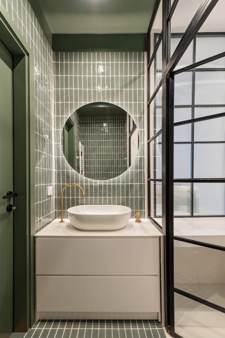 Το κεντρικό υπνοδωμάτιο ενοποιήθηκε με το λουτρό αποκλειστικής χρήσης μέσα από τη διάχυση του φυσικού φωτός που το διαπερνάει.