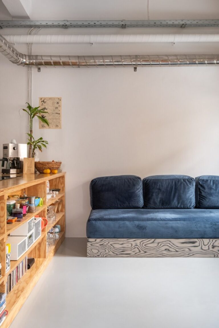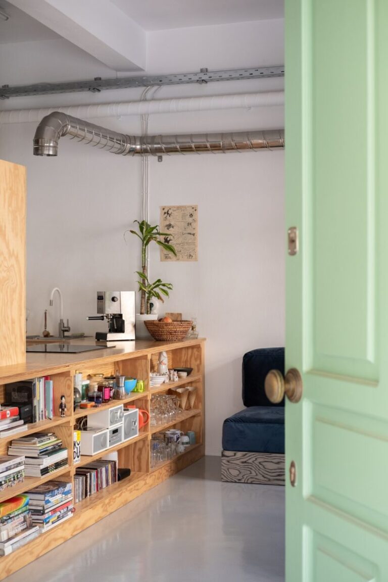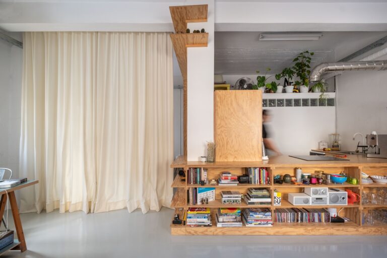Αυτή η ιδέα επιτρέπει στον χώρο να «αναπνέει», ενώ εισέρχεται περισσότερο φως στο διαμέρισμα-studio, καθιστώντας το ιδανικό χώρο για εργασία και διαβίωση.