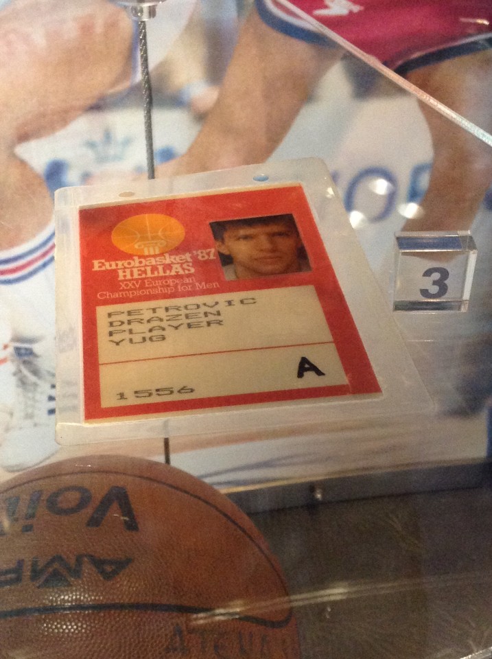 Δίπλα στο, κάποτε δικό του, καφέ-μπαρ Amadeus (ακόμα ανοιχτό, αλλά «πολύ λιγότερο σοσιαλιστικό» μου λέει χαμογελώντας ο Νίκος Παπαδογιάννης που ήταν στο Ζάγκρεμπ την ημέρα της κηδείας, αυτόπτης μάρτυρας το 1993 ενός ασύλληπτου πόνου για το νεοπαγές τότε κράτος). Σε δύο ορόφους και μια κλειδωμένη αίθουσα που η μαμά Μπιζέρκα Πέτροβιτς ανοίγει μόνο σε υψηλούς προσκεκλημένους, ξεδιπλώνεται όλος ο μύθος του Ντράζεν Πέτροβιτς. Ο μύθος του ειδώλου της δικής μου παιδικής/εφηβικής ηλικίας και προφανώς πολλών από σας που διαβάζετε. Οι φανέλες του, τα κύπελλα και τα μετάλλια, σπάνια memorabilia όπως π.χ. η διαπίστευσή του από το Ευρωμπάσκετ ’87 (τότε που η ελληνική εξέδρα τον μισούσε, μην ξεχνιόμαστε), λάβαρα, πλακέτες, μπάλες σημαντικών αγώνων, μια πολύ συγκινητική φωτογραφία που είναι αγκαλιά με τους μεγάλους αντιπάλους του Σοβιετικούς Σαμπόνις/Μαρτσουλιόνις/Κουρτινάιντις και σία, όλα τοποθετημένα σε προθήκες ανα χρονικές περιόδους της καριέρας του. Στην σκάλα παραταγμένες οι εμφανίσεις που φόρεσε. Σιμπενκα/Εθνική Γιουγκοσλαβίας/Τσιμπόνα/Ρεάλ/Μεικτή Ευρώπης/Πόρτλαντ/Νιου Τζέρσεϊ, απέναντι από ένα 80s πορτρέτο του σε στυλ «ο πιο περιζήτητος Γιουγκοσλάβος εργένης». Στο ισόγειο υπάρχουν επίσης βίντεο με highlights από την πορεία του (μόνο δέος στο 80s Πασοκικό μουστάκι του Βλάντο Τζούροβιτς που τον προπονούσε στην Σιμπένκα) και φυσικά το ταμείο με τα αναμνηστικά. Από κασέτες (!) με τραγούδια αφιερωμένα σε αυτόν μέχρι φανέλες, DVD και φωτογραφικά άλμπουμ.