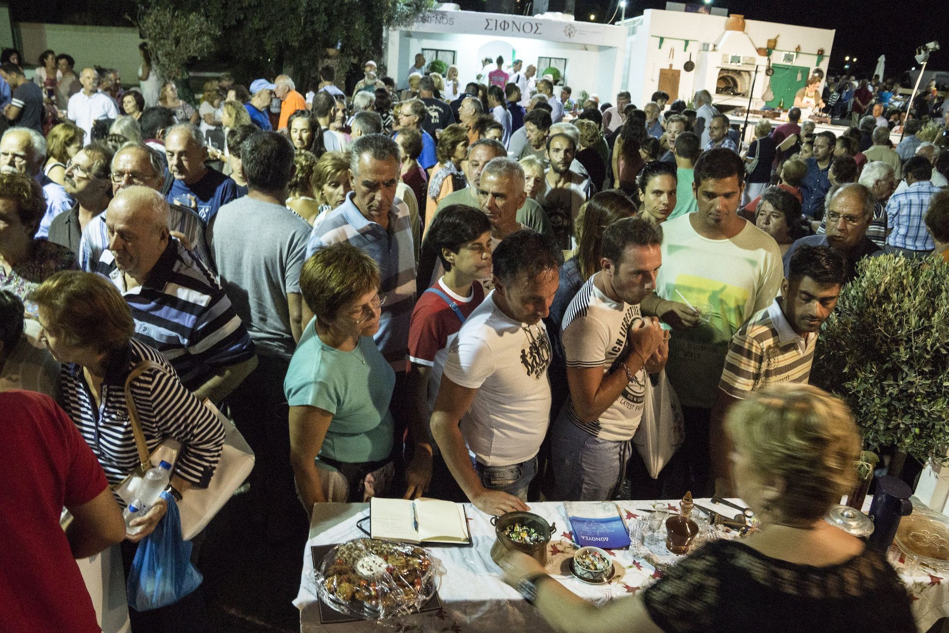 Φέτος, το Φεστιβάλ Κυκλαδικής Γαστρονομίας «Νικόλαος Τσελεμεντές» που πραγματοποιείται με τη στήριξη του Δήμου Σίφνου και της Περιφέρειας Νοτίου Αιγαίου μετρά τον 8ο χρόνο του. Τα λευκά περίπτερα παρατάχθηκαν και πάλι στην κεντρική πλατεία του αρχοντικού Αρτεμώνα όπου κάθε Σεπτέμβρη στήνεται ένα τριήμερο γλέντι. Από τις 7 μ.μ και μετά οι αντιπροσωπείες τρατάρουν τους επισκέπτες, ενώ διάσπαρτα στον αέρα θα δεις εκστασιασμένους ξένους επισκέπτες που κινούνται αμήχανα από περίπτερο σε περίπτερο σε μια κάπως διονυσιακή ατμόσφαιρα, ψελλίζοντας “efkaristo” την ώρα που δοκιμάζουν τοματάκια, κοπανιστή, φάβα, καππαροσαλάτα, πίτες, ελιές, παστέλια και ό,τι άλλο μπορεί να βάλει ο νους σου μετά οίνου ασφαλώς.