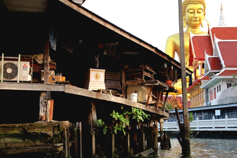 Αλλά τα χαμογελαστά πρόσωπα στην πλευρά αυτή της Μπανγκόκ, τα βλέπεις μέσα στις φτωχικές καλύβες, ξεπροβάλλουν από τα μόνιμα ανοίγματα που λειτουργούν ως παράθυρα. Καθώς περνάς με το βαρκάκι, θα βγουν όλοι να σε χαιρετήσουν και να σου σκάσουν ένα χαμόγελο.