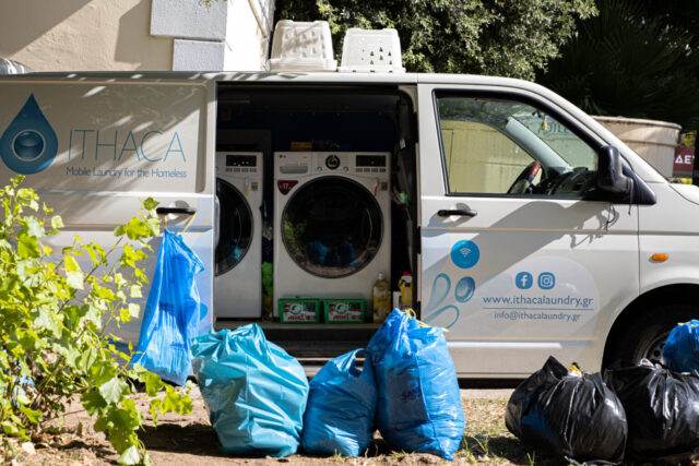 Η Μ.Κ.Ο. Ithaca ιδρύθηκε από τρεις φοιτητές, τον Θάνο Σπηλιόπουλο, τον Φάνη Τσόνα και την Ανδήλη Ραχούτη. Εμπνεόμενοι από μία παρόμοια δράση στην Αυστραλία, αποφάσισαν να δημιουργήσουν το πρώτο κινητό πλυντήριο ρούχων για τους αστέγους στην Ελλάδα, αλλά και στην Ευρώπη.