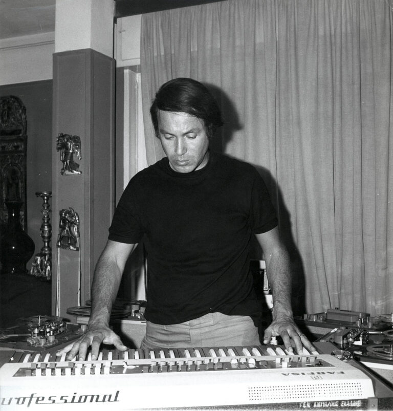 Ο Γιάννης Χρήστου στο προσωπικό του στούντιο, c.1968. Αρχείο Γιάννη Χρήστου - Κέντρο Έρευνας και Τεκμηρίωσης Ωδείου Αθηνών.