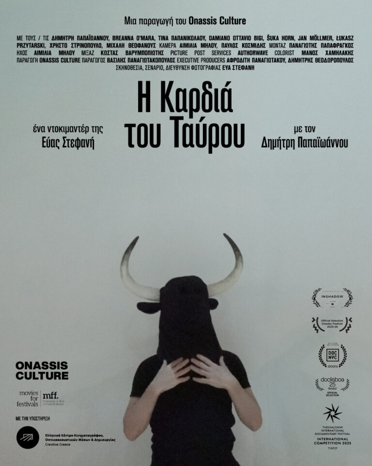 Η ΚΑΡΔΙΑ ΤΟΥ ΤΑΥΡΟΥ | Παραγωγή: Onassis Culture | Σκηνοθεσία, Σενάριο & Διεύθυνση Φωτογραφίας: Εύα Στεφανή | Με τον Δημήτρη Παπαϊωάννου και τις/τους: Breanna O’Mara, Τίνα Παπανικολάου, Damiano Ottavio Bigi, Šuka Horn, Jan Möllmer, Łukasz Przytarski, Χρήστο Στρινόπουλο, Μιχάλη Θεοφάνους | Executive Producers: Αφροδίτη Παναγιωτάκου, Δημήτρης Θεοδωρόπουλος |μΠαραγωγός: Βασίλης Παναγιωτακόπουλος | Μοντάζ: Παναγιώτης Παπαφράγκος | Editing Contributor: Γιώργος Μαυροψαρίδης | Κάμερα: Εύα Στεφανή, Αιμιλία Μηλού, Παύλος Κοσμίδης | Ήχος: Αιμιλία Μηλού