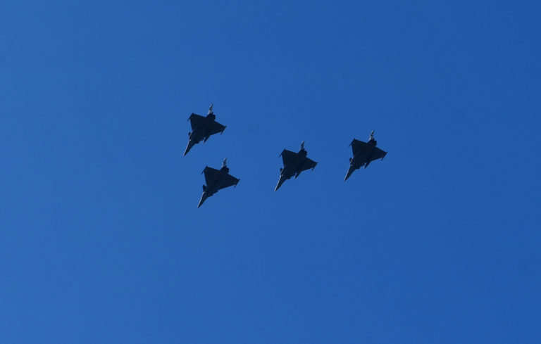 Αεροπλάνα της Πολεμικής Αεροπορίας πετούν πάνω από την Αττική το μεσημέρι της Παρασκευής.