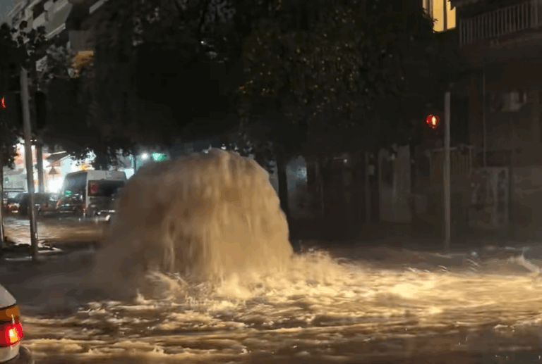 Ανάμεσα στα προβλήματα που προέκυψαν σε διάφορες περιοχές του Λεκανοπεδίου από την κακοκαιρία «Byron», ήταν και η υπερχείλιση αγωγού σε κεντρικό δρόμο της Καλλιθέας, η οποία μάλιστα μετέτρεψε σε «σιντριβάνι» εκείνο το σημείο του δρόμου, το απόγευμα της Πέμπτης (4/12).
