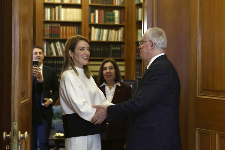 Τις τεράστιες προκλήσεις που αντιμετωπίζει σήμερα η Ευρώπη, καθώς και την ανάγκη για στρατηγική της αυτονομίας, υπογράμμισε ο Πρόεδρος της Δημοκρατίας Κωνσταντίνος Τασούλας κατά την συνάντησή του, με την πρόεδρο του Ευρωπαϊκού Κοινοβουλίου, Ρομπέρτα Μέτσολα, στο Προεδρικό Μέγαρο.