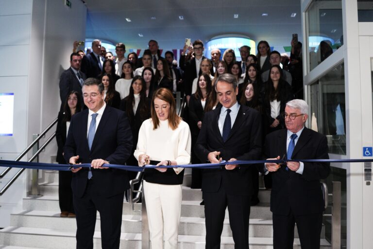 Ο πρωθυπουργός Κυριάκος Μητσοτάκης και η πρόεδρος του Ευρωπαϊκού Κοινοβουλίου Ρομπέρτα Μέτσολα εγκαινίασαν νωρίτερα το κέντρο Europa Experience της Αθήνας στο Αρσάκειο Μέγαρο.