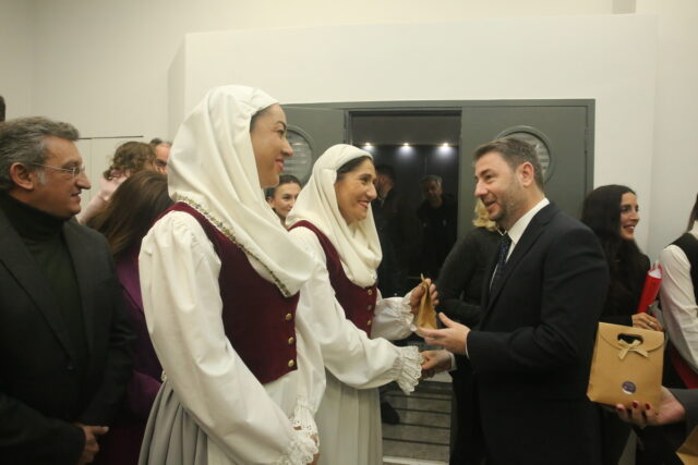 Τα κάλαντα της Πρωτοχρονιάς άκουσε ο Νίκος Ανδρουλάκης από την αδελφότητα Κεφαλληνίων και Ιθακησίων Πειραιά, στα κεντρικά γραφεία του ΠΑΣΟΚ.