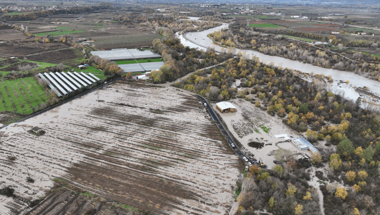 Καλλιέργειες και αγροτικοί δρόμοι είναι βυθισμένοι στα λασπόνερα.