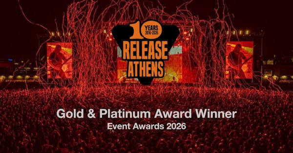 Το Release Athens Festival γιορτάζει φέτος 10 χρόνια παρουσίας με μια σημαντική διάκριση στα Event Awards 2026: Gold Award στην κατηγορία Cultural Event και Platinum Award στην γενική κατηγορία Events. Μια αναγνώριση που ανήκει πρωτίστως στο κοινό που το στηρίζει σταθερά εδώ και μια δεκαετία και το έχει αγκαλιάσει από την πρώτη μέρα.