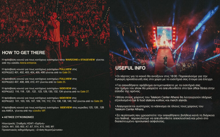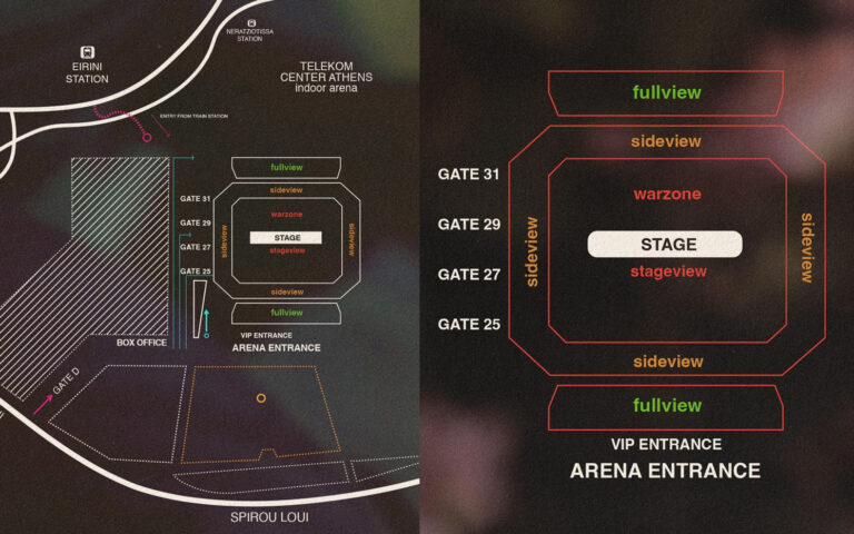 H πρόσβαση κοινού για τους κατόχους εισιτηρίων στην WARZONE κ' STAGEVIEW γίνεται από την είσοδο Arena entrance.