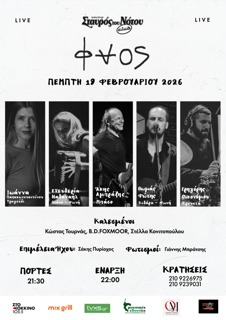 Το νεοσύστατο συγκρότημα ΦΑΟΣ μας προσκαλεί την Πέμπτη 19 Φεβρουαρίου στο club στον Σταυρό του Νότου για την πρώτη τους live εμφάνιση. Μαζί τους θα είναι οι αγαπημένοι τους φίλοι Κώστας Τουρνάς, B.D. Foxmoor και Στέλλα Κονιτοπούλου.
