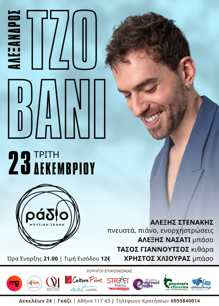 Ο Αλέξανδρος Τζοβάνι επιστρέφει στη μουσική σκηνή «Ράδιο» την Τρίτη 23 Δεκεμβρίου με ένα live γεμάτο ενέργεια και μοναδικές ερμηνείες. Μας παρουσιάζει το ολοκαίνουργιο άλμπουμ του με τίτλο ‘’8 παράθυρα στον κόσμο’’ και μας υποδέχεται στο δικό του μουσικό σύμπαν μέσα από ξεχωριστές εκτελέσεις τραγουδιών που άφησαν ιστορία στην ελληνική μουσική.