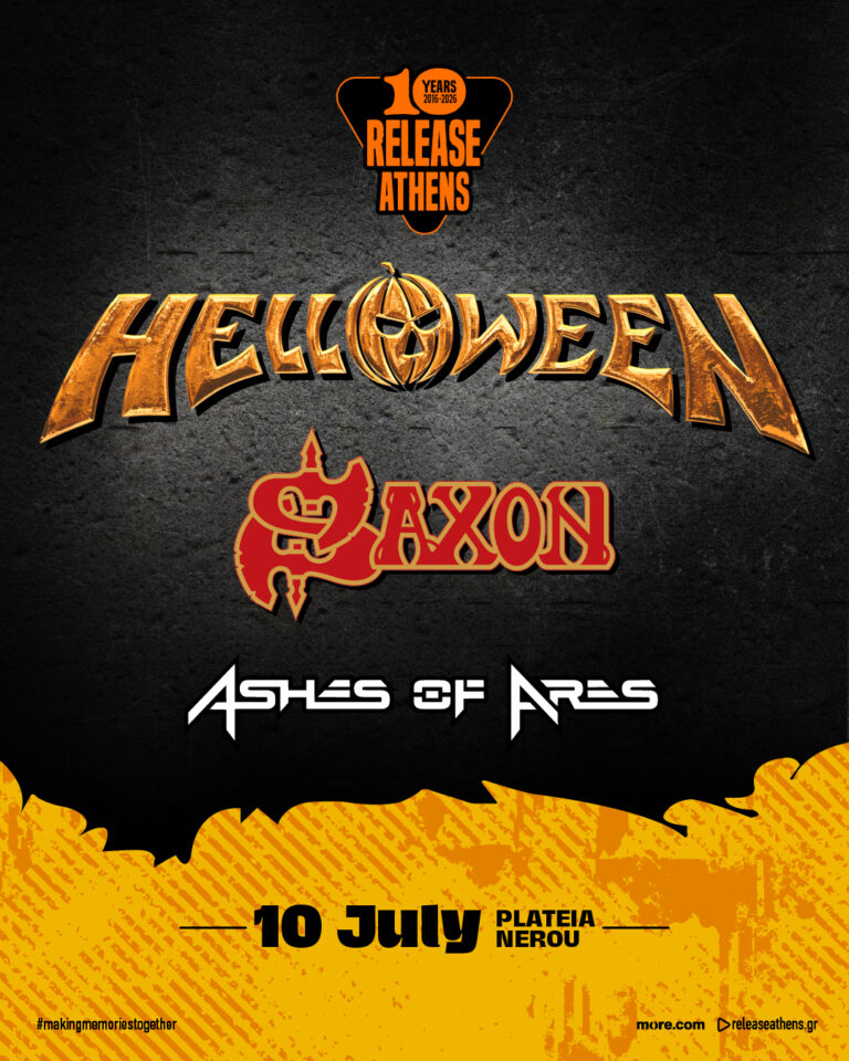Το Release Athens 2026 υποδέχεται τους Ashes of Ares, την Παρασκευή 10 Ιουλίου, στην Πλατεία Νερού. Το δίδυμο των Matt Barlow και Freddie Vidales (πρώην Iced Earth) θα μοιραστεί τη σκηνή με τους Helloween και Saxon, σε μια βραδιά που συμπυκνώνει την ιστορία και το παρόν του heavy metal.
