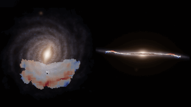Γνωρίζουμε ότι τα αστέρια του Γαλαξία περιστρέφονται γύρω από το κέντρο του και το τηλεσκόπιο Γαία έχει μετρήσει τις ταχύτητες και τις κινήσεις τους. Το ίδιο τηλεσκόπιο ανακάλυψε ότι ο δίσκος του Γαλαξία ταλαντεύεται με την πάροδο του χρόνου παρόμοια με την κίνηση μίας σβούρας. Συνολικά, το διαστημικό τηλεσκόπιο Γαία, που «σίγησε» τον περασμένο Μάρτιο, μας έχει προσφέρει τον μεγαλύτερο και ακριβέστερο πολυδιάστατο χάρτη του Γαλαξία μας. Τώρα η μελέτη των δεδομένων του δίνει στους ερευνητές μία επιπλέον νέα πληροφορία: Ένα μεγάλο κύμα μετακινεί τα άστρα του Γαλαξία μας σε αποστάσεις δεκάδων χιλιάδων ετών φωτός από τον Ήλιο. Η ανακοίνωση του ESA παρομοιάζει αυτό το γαλαξιακό κύμα αστεριών με τους κυματισμούς προς τα έξω που προκαλεί μία πέτρα όταν πέφτει σε μία λίμνη.