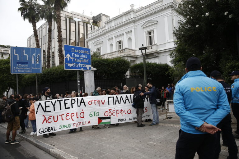 Οι διοργανωτές της κίνησης March to Gaza έχουν ζητήσει να μπουν στο υπουργείο να παραδώσουν τα αιτήματα τους. «Μετά την αναχαίτιση της αποστολής Global Sumud Flotilla, στην οποία συμμετέχουν και είκοσι επτά (27) Έλληνες και Ελληνίδες πολίτες, ζητούμε την άμεση και ουσιαστική παρέμβαση του Υπουργείου Εξωτερικών για την προστασία της ζωής, της σωματικής ακεραιότητας και των δικαιωμάτων τους».