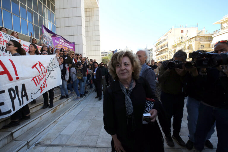 Η Μάγδα Φύσσα αντιδρά έξω από το Μικτό Ορκωτό Δικαστήριο, μετά την ανακοίνωση της απόφασης του δικαστηρίου για την υπόθεση βιασμού και μαστροπείας της 12χρονης ανήλικης από τον Κολωνό, Παρασκευή 29 Μαρτίου 2024. ΑΠΕ-ΜΠΕ/ΑΛΕΞΑΝΔΡΟΣ ΒΛΑΧΟΣ