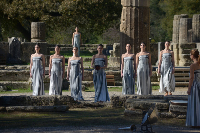 Ιέρειες συμμετέχουν στην πρόβα της τελετής Αφής της Ολυμπιακής Φλόγας για τους Χειμερινούς Ολυμπιακούς Αγώνες «Μιλάνο Κορτίνα 2026», στην Αρχαία Ολυμπία, Δευτέρα 24 Νοεμβρίου 2025. ΑΠΕ-ΜΠΕ/ΔΗΜΗΤΡΗΣ ΠΑΠΑΪΩΑΝΝΟΥ