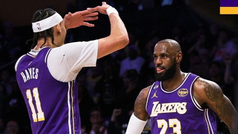 Ο ΛεΜπρόν ολοκλήρωσε την αναμέτρηση με 28 πόντους, 12 ασίστ και 10 ριμπάουντ, σημειώνοντας το πρώτο του triple-double μετά από 36 αγώνες τη φετινή σεζόν. Ο Ρούι Χατσιμούρα πρόσθεσε 21 πόντους, ο Όστιν Ριβς 18 από τον πάγκο και ο Τζάκσον Χέιζ 16 για τους Λέικερς, που αγωνίστηκαν για τέταρτο διαδοχικό παιχνίδι χωρίς τον Λούκα Ντόντσιτς (δικέφαλος μηριαίος). Ο ΝτιΆντρε Έιτον (γόνατο) έλειψε επίσης για δεύτερο σερί ματς.
