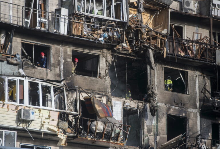 «Οι Ρώσοι πλήττουν πολυκατοικίες. Πολλά μεγάλα κτίρια έχουν υποστεί ζημιές σε όλο το Κίεβο, σχεδόν σε κάθε συνοικία», είχε δηλώσει νωρίτερα ο επικεφαλής της στρατιωτικής διοίκησης της πόλης Τιμούρ Τκατσένκο.